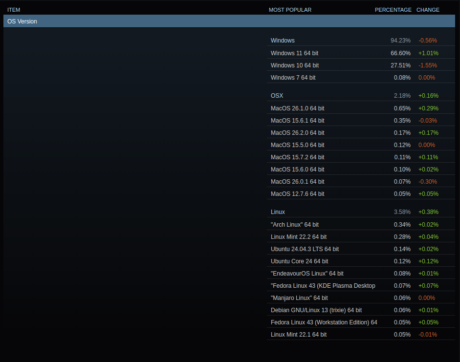 This is why I love Linux. Imagine my surprise, recently running across a steam forum post noting Linux is ramping up in the Steam community. For as long as I’ve used Steam, Linux was always at 1% or less overall. This month, no not this month, Linux usage has bumped up to 3.5%! This is great news. Congrats to all the newly freed users! Cheers to hoping this year will be the year Linux goes mainstream. Consider donating to your favorite distribution as you adopt Linux, it really helps. Here’s my favorite: https://linuxmint.com/donors.php